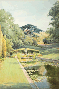 Henry John Sylvester Stannard, Lily Pond, Goldney House, Bristol, 1933. Watercolor on paper. The Elsley Collection.